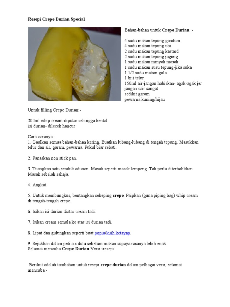 Durian Crepe Yang Sedap Dan Berkrim Buat Orang Lapo