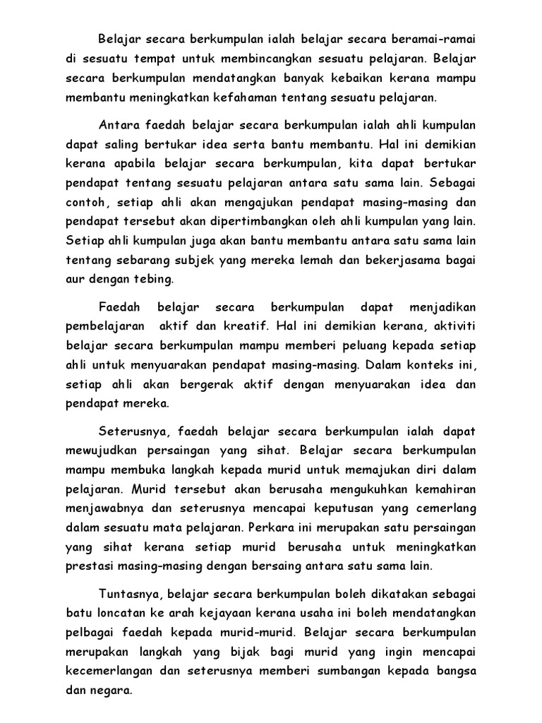Contoh Karangan Faedah Belajar Secara Berkumpulan Contoh Otosection