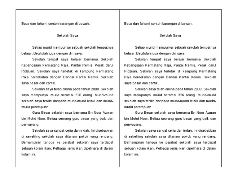 Contoh Contoh Karangan Sekolah Rendah Berita Kempen Mengindahkan Kawasan Sekolah Pdf